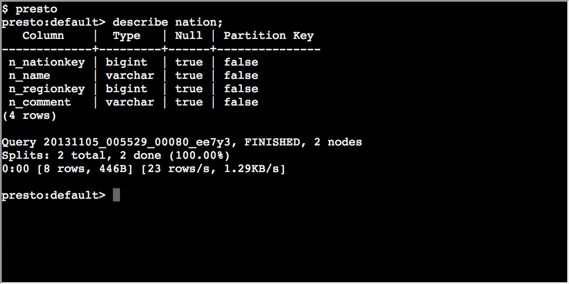 Presto is an open source distributed SQL query engine for running interactive analytic queries against data sources of all sizes ranging from gigabytes to petabytes.